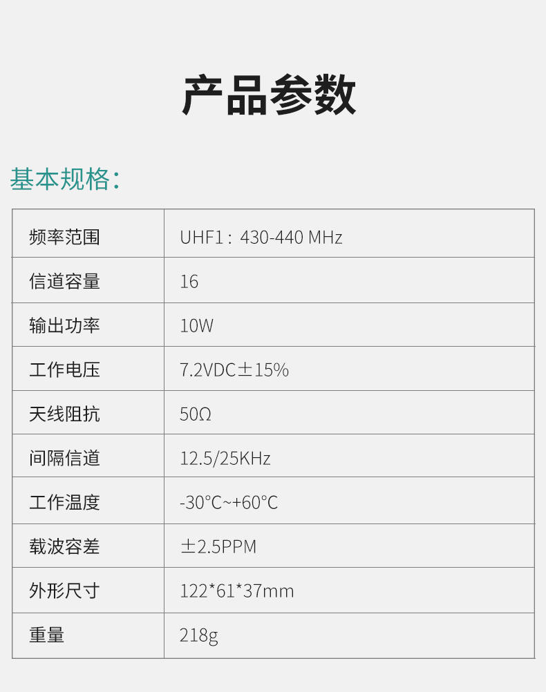 | 包装清单 | 对讲机*1,说明书*1,充电器*1 |